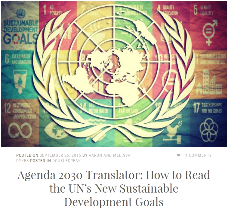 Snart går vi in i 2016. FN:s \”Agenda 2030\” förklarad och översatt från PR-språket \”NEWSPEAK\” – till vanlig engelska.