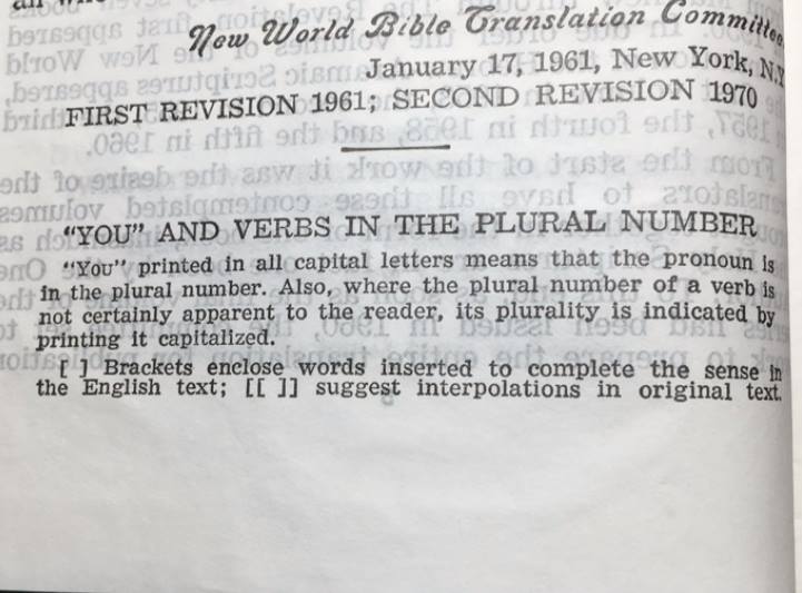 Se första bilden. Jag börjar där vi ser två klamrar [ ]. Så här skriver Sällskapet Vakttornet i förordet på den andra revisionen från 1970.: