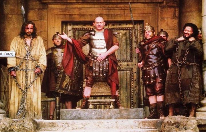 Pilatus förstod att judarna ville döda en oskyldig och att Jesus var ett offer för avund. Han ville därför släppa Jesus och gjorde allt i sin makt för att befria honom. Men han kunde inte på grund av det politiska trycket; från Rom som hade sänt honom för att hålla ordning, och det judiska folket som hotade med upplopp och oro. Pilatus ville ha en utomståendes åsikt och skickade Jesus till Herodes, som inte fann honom skyldig. Herodes skickade Jesus tillbaka. Så Pilatus fick tillbaka Jesus och var tvungen att komma på en diplomatisk lösning.
