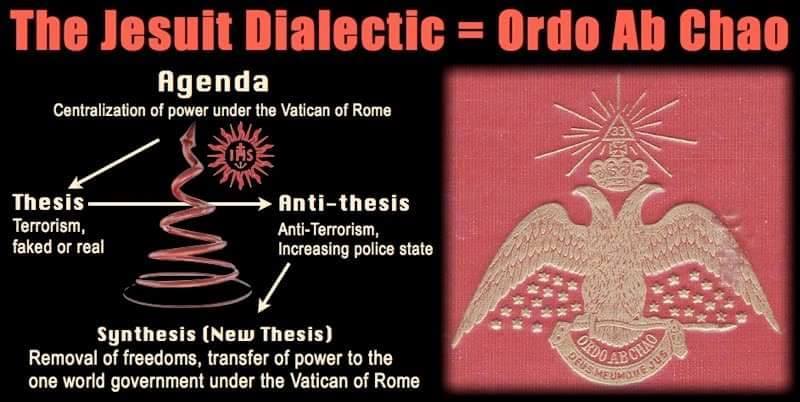 Målet med Tes och Antites är Syntes, där världens barn kommer omfamna den enhet som presenteras, enhet inom religion, samhälle och politik. Vi förbereds för att ta emot Antikrist och den nya världsordningen som bara kan uppstå genom kaos. Det kommer bli så kaotiskt att vi kommer skrika efter enhet, fred och säkerhet.