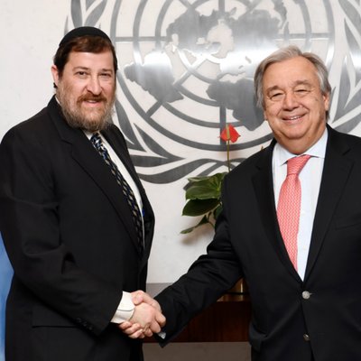 "Den här dagen samlades människor från hela världen på uppdrag av Noahs lagar," sade Rabbi Yakov D. Cohen (bilden t.h. tillsammans med FN's generalsekreterare António Guterres), chef för institutet för Noahide Code, som sponsrade konferensen. "Deras iakttagande krävs, så att FN:s vision - att ha en lugn och civiliserad värld, fylld av ekonomisk rättvisa och rättfärdighet - kommer att segra."