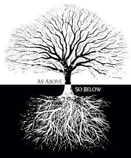 Man stöter ofta på uttrycket Som ovan, Så nedan, när man försöker sätta sig in i Kabbalah. Det är en tanke som genomsyrar hela religionen, att allt som finns där ovan ska manifesteras här nedan, ett maxim som används av alla ockulta religioner och anses vara det starkaste maxim ockultisterna kan använda. T.ex. bilden ovanför är hämtat från BibelBelWitch, en blogg för häxor, men används också av Kabbalah.info och andra kabbalistiska webbsidor.