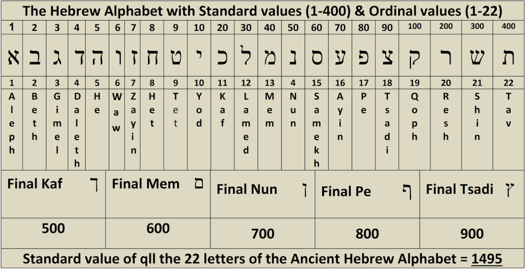 “18 = 6 ו (höger) 6 ו (överst) 6 ו (vänster) … Gematrias konstruktion av Tav är en Vav = 6 till höger, plus en Vav = 6 på överst, plus en ו Vav = 6 till vänster. Den konstruerade Gematria är 18 … När vi undersöker den hebreiska texten i Hesekiel 9:4 finner vi att det engelska ordet ”mark” används för att översätta de två hebreiska tecknen חו, som stavas till tav … ”7