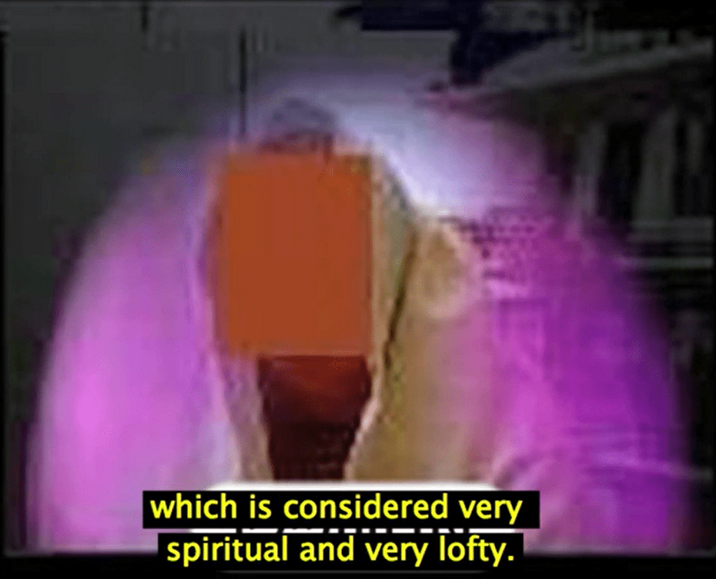 En annan bild visar hur personen omges helt av ett lila ljus.
