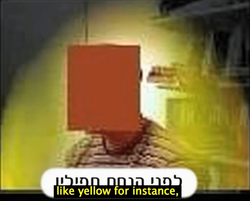 I videon där den fyrhövdade Shin beskrivs vänder rabbinen tefillinen upp och ner för att beskriva hur Shin innehåller 3 Vav (ווו) och 3 huvuden. På bilden har jag ritat upp var de 3 vav och 3 huvuden finns.